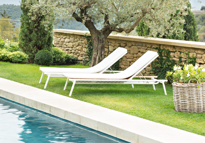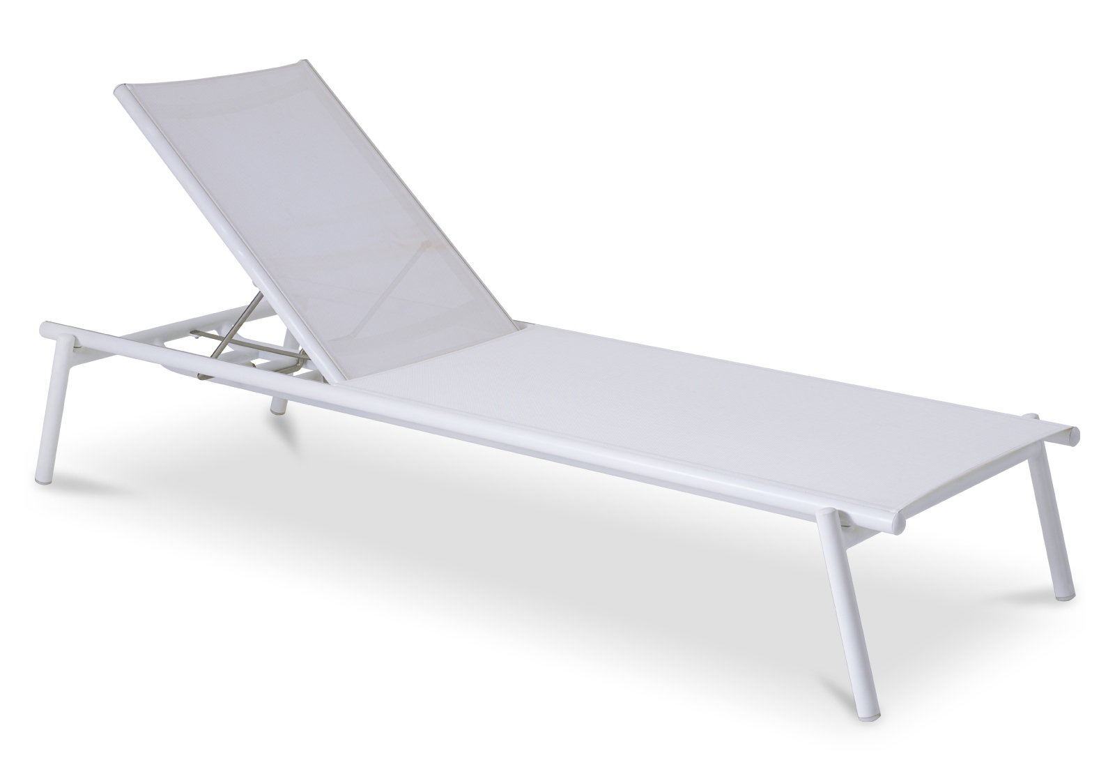 Bain de soleil empilable, structure tubulaire aluminium blanc.