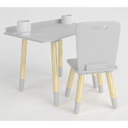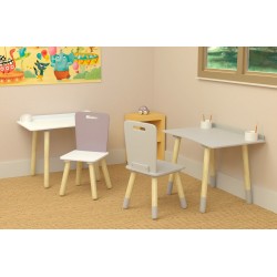 Coffret en bois : Bureau d’écolier + une chaise grise.