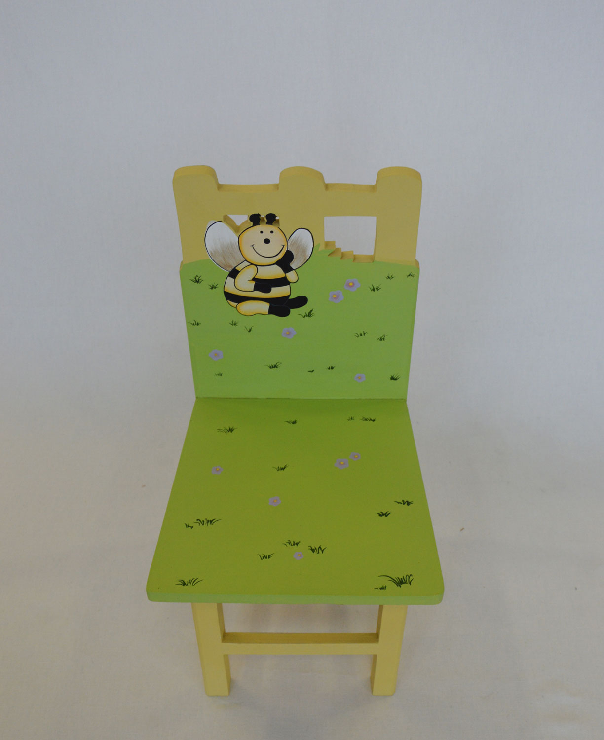 Chaise enfant avec une structure ainsi que son dossier en bois.