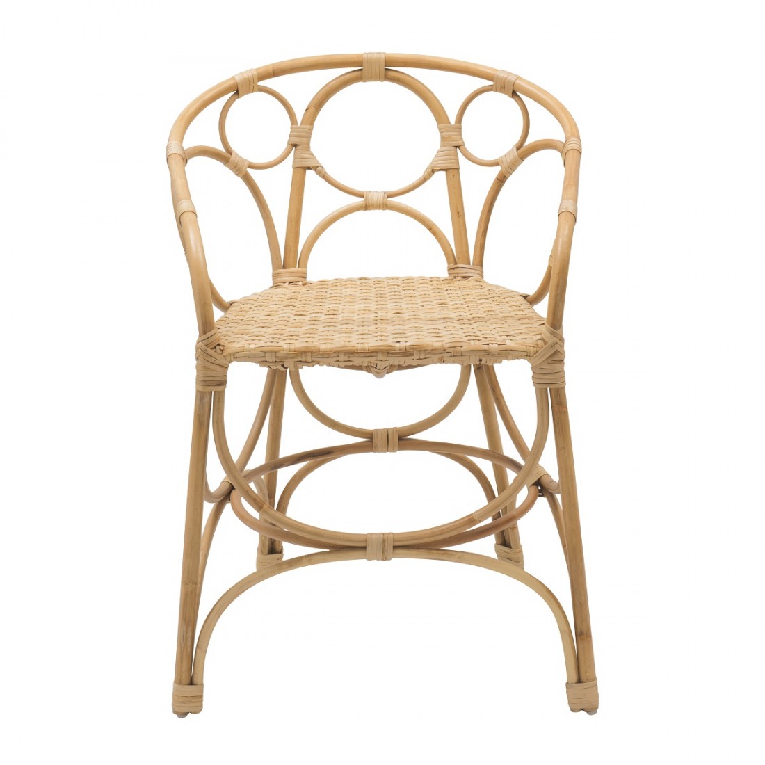 Le fauteuil en rotin Gingko à motif « bulles » combine une extrême légèreté à une robustesse exceptionnelle, grâce à l’emploi d’une variété de rotin de petit diamètre mais très dense. La disposition des arcades, volutes et ligatures participe à la solidité de l’ensemble autant qu’au design du produit. Lauriane Beaunier et Aurélien Veyrat se sont inspiré des méthodes traditionnelles indonésiennes, où rien n’est superflu. Résultat, des lignes gracieuses et graciles, n’utilisant que le strict nécessaire d’un matériau 100% naturel. Structure en canne de rotin écorcée, ligatures et tissage de l’assise en éclisse de rotin, finition vernis naturel à l’eau. Chaque pied est équipé d’un patin en nylon.