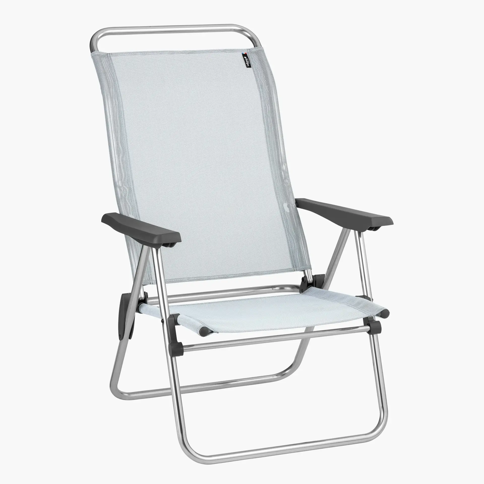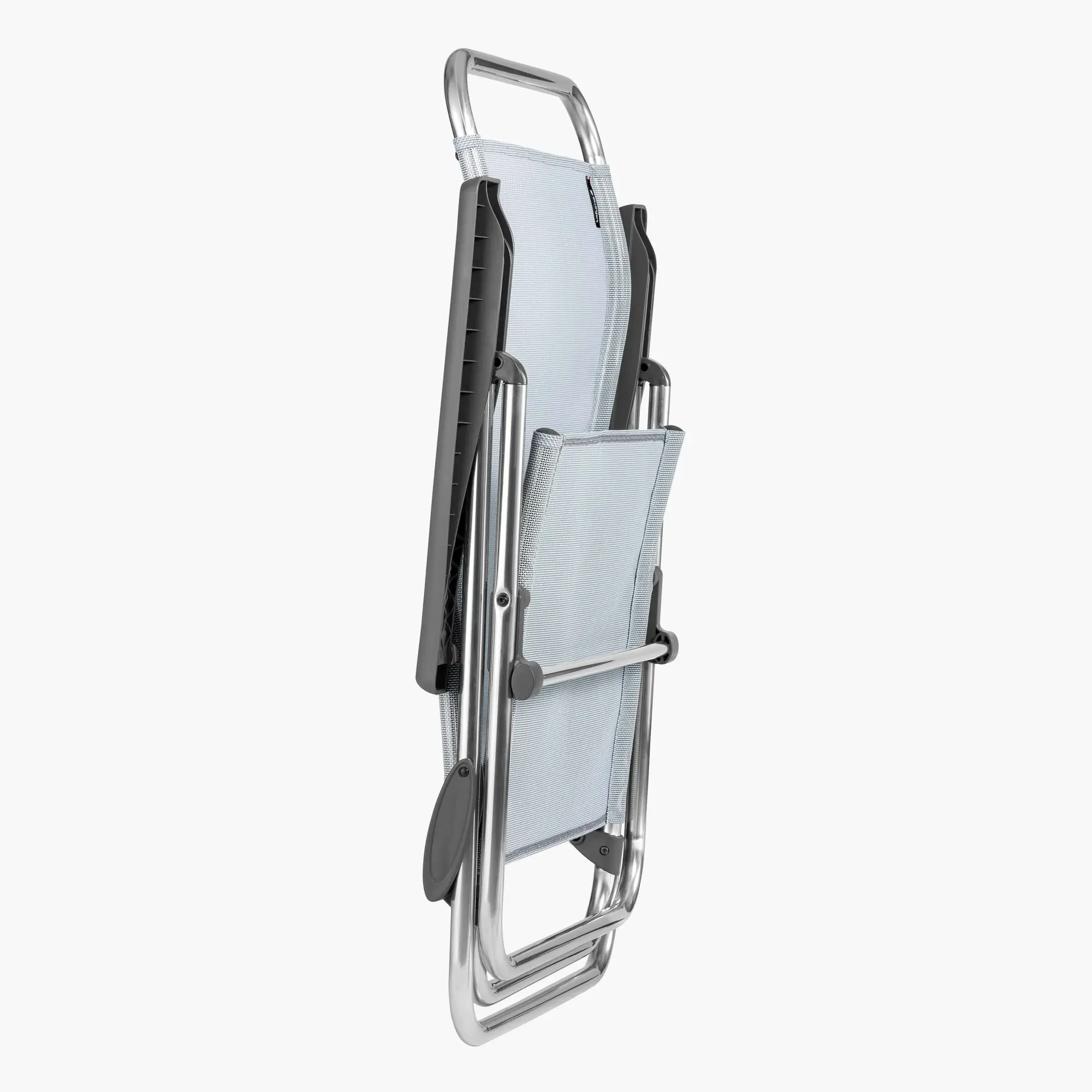 – Ses cinq positions différentes, réglables depuis les accoudoirs : inclinée pour une sieste, droit pour une pause lecture, médium pour une douce farniente.