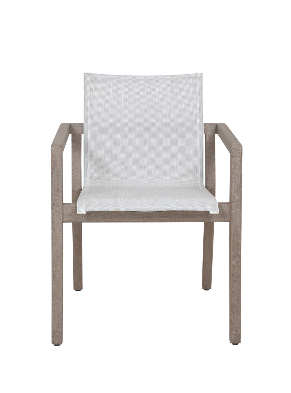 Fauteuil de repas empilable COPENHAGUE en teck finition Duratek® et toile Batyline Eden.