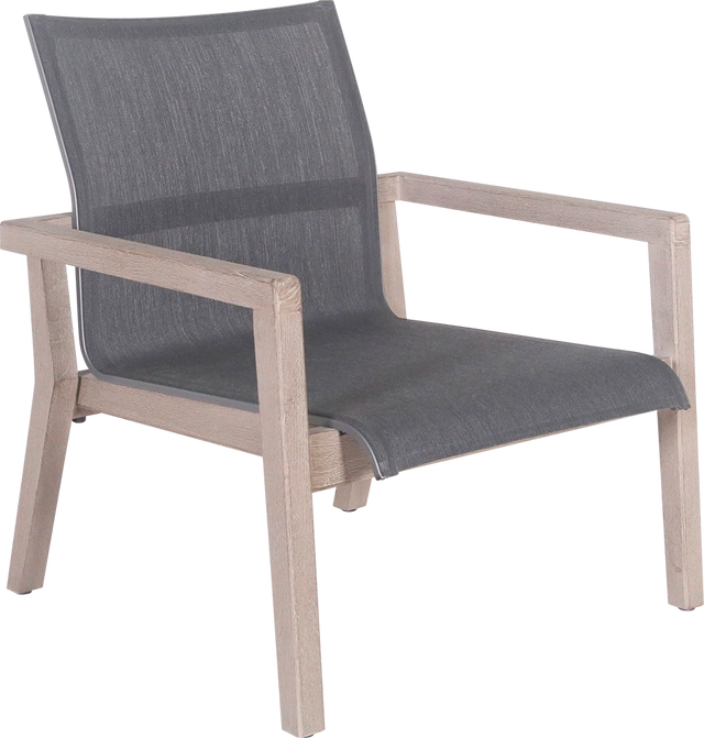 Fauteuil COPENHAGUE, structure en teck finition Duratek® et toile grafito ou batyline Eden blanc chiné. Idéal et pratique, ce fauteuil est empilable. D’inspiration scandinave, sobriété et élégance sont les maîtres mots de cette collection.