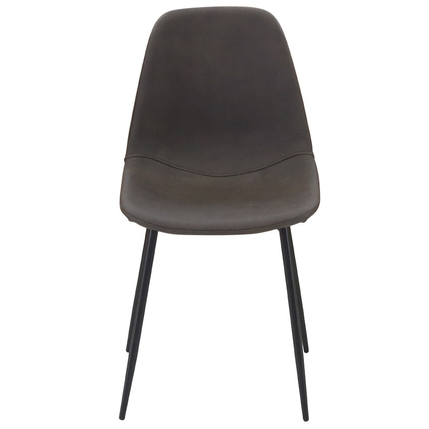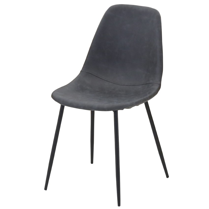 Chaise moderne et vintage avec un piètement métal et finition époxy, ainsi qu’un revêtement en polyuréthane.