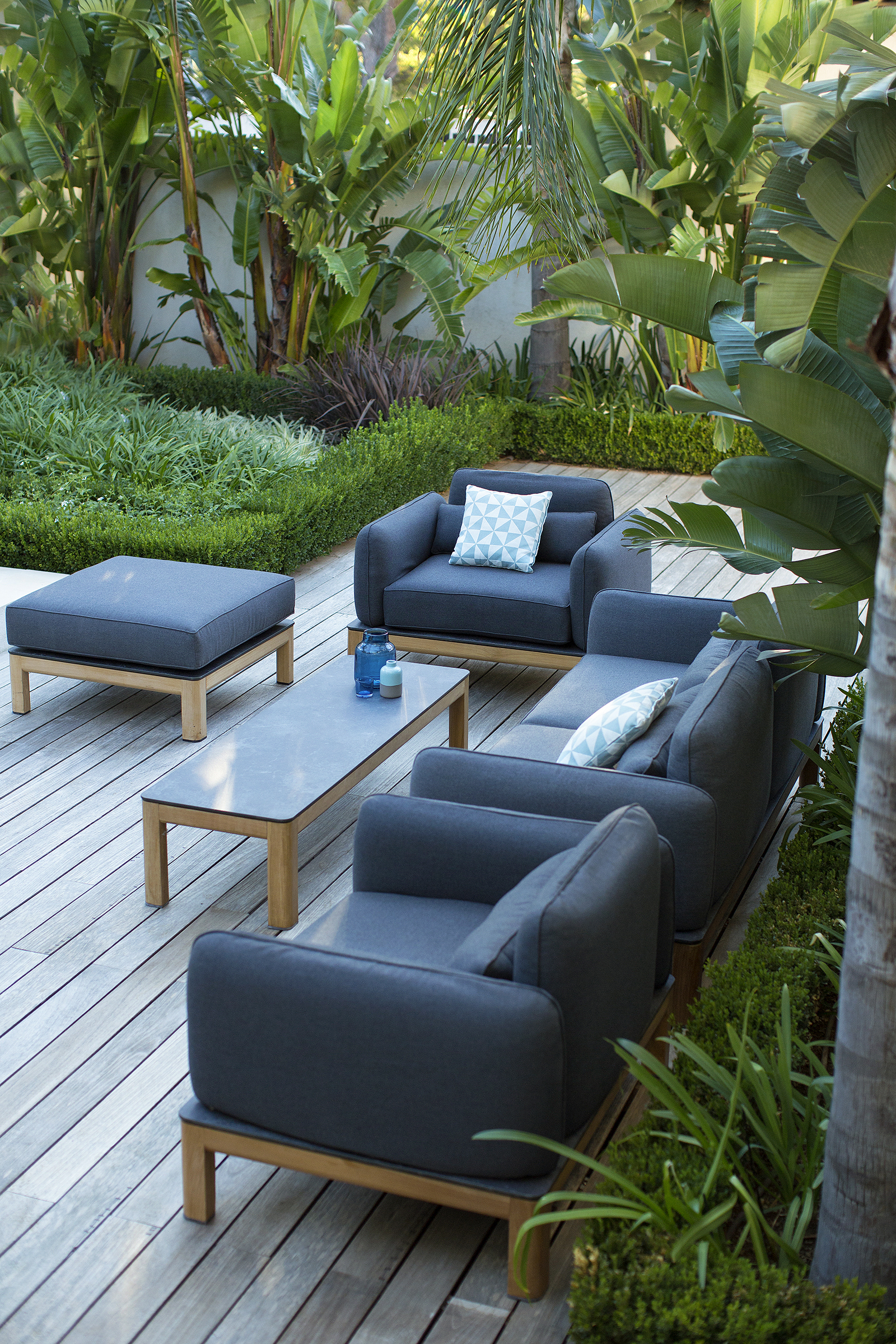 Structure fauteuil, piètement en teck, base en HPL ardoise