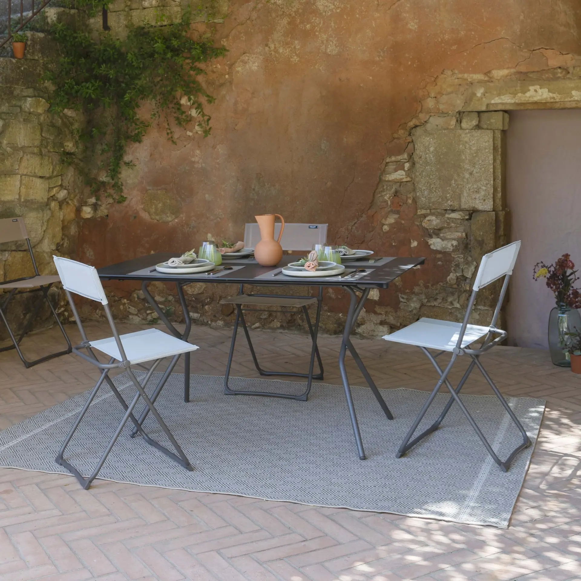 La plus grande des tables Anytime signée LAFUMA MOBILIER, conjugue praticité, robustesse et élégance. Conçue pour dégager le maximum d’espace au niveau des jambes, elle assure un vrai confort à l’heure du repas. On aime son esprit contemporain, ses lignes sobres et intemporelles, son système de pliage astucieux et exclusif. Facile d’entretien, elle se sent bien partout, en terrasse, sous la véranda comme au jardin. C’est la compagne idéale des déjeuners et dîners conviviaux à quatre ou à six convives.