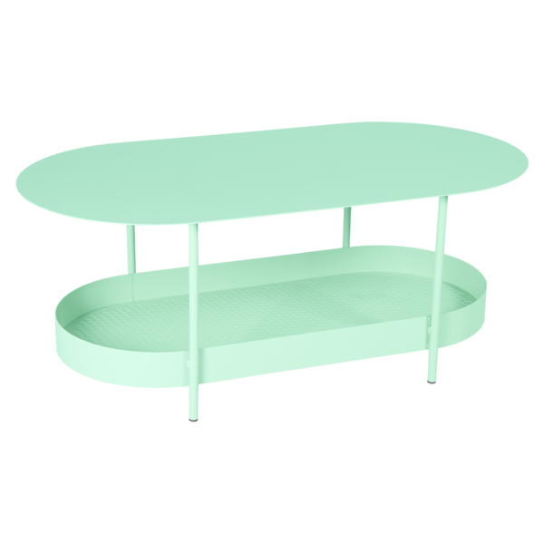 Sa conception, alliée à la peinture poudre polyester anti-UV, lui permettent d’affronter les intempéries. Astucieusement pensées, les perforations du plateau inférieur qui permettent l’écoulement de l’eau de pluie ou d’arrosage -si vous y avez logé des plantes- et un nettoyage facile… La table basse Salsa aime accompagner le guéridon du même nom : sa forme oblongue a bel et bien été choisie pour s’assortir parfaitement avec son disque à lui, pour un très bel effet de gamme ! Et quand vous saurez qu’ils ont été entièrement fabriqués en France, dans les ateliers de Thoissey, vous ne pourrez que succomber…