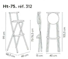 2. Dimensions : Largeur : 40cm / Profondeur : 48.5cm / Hauteur totale: 99cm / Hauteur assise : 75cm
